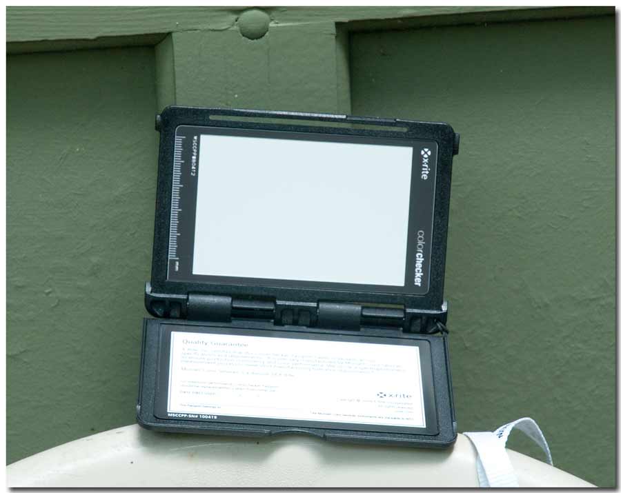 Color Checker Passport by Xrite, used for accurate color rendition from camera to computer editing.